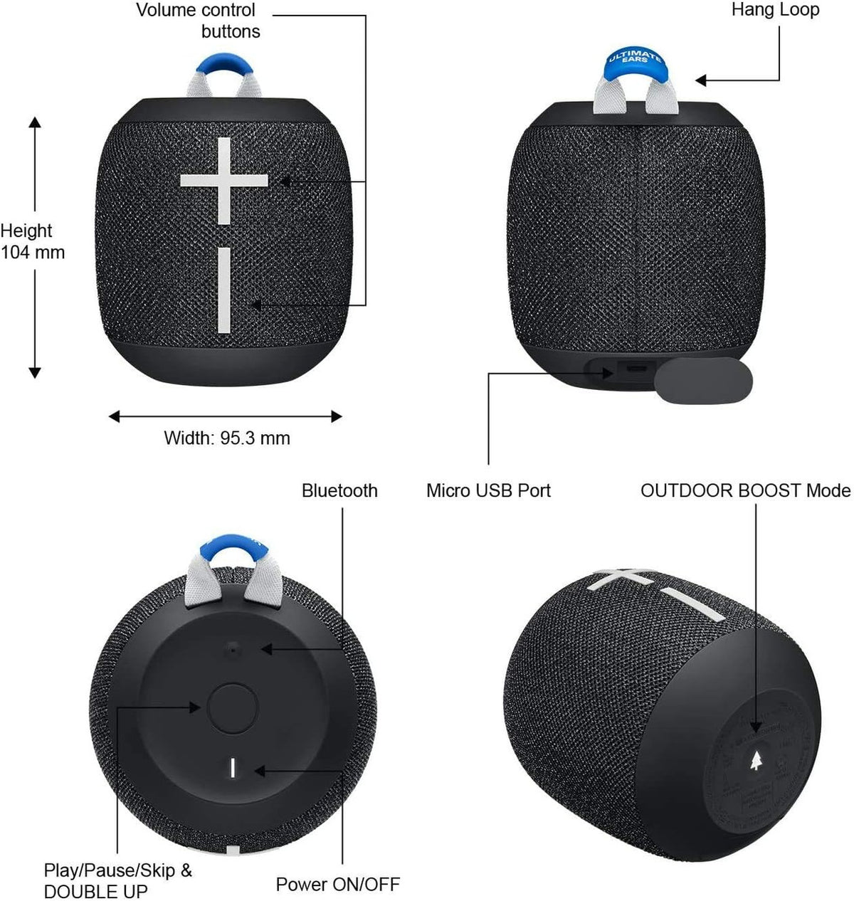 Logitech Ultimate Ears UE WONDERBOOM 2 Bluetooth Speaker - Wireless Boom Box Waterproof with Double-Up Connection (Non Retail Packaging) - (Deep Space)