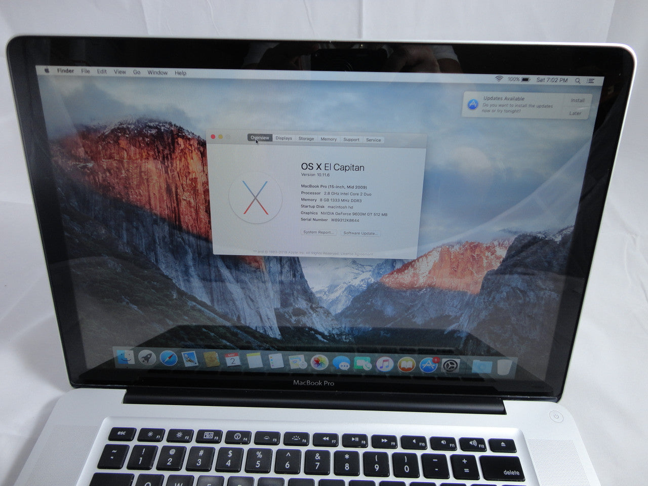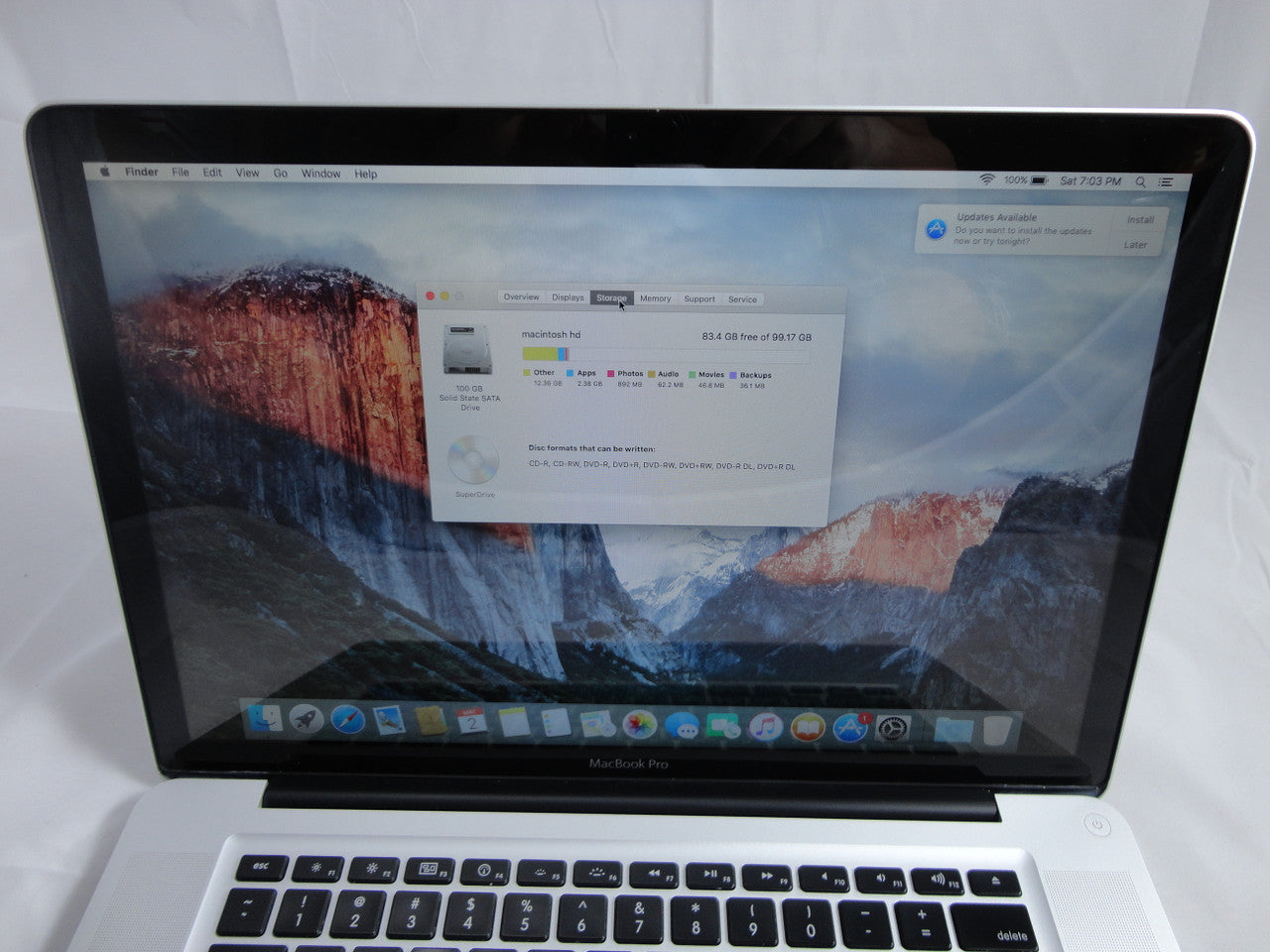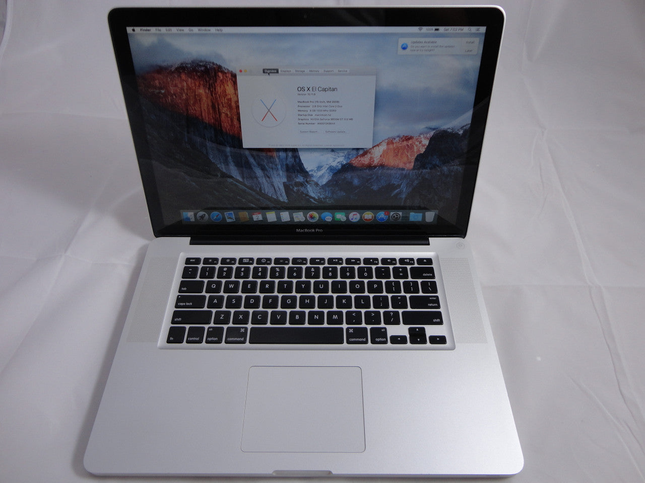 Apple MacBook Pro MB986LL/A 15.4-Inch Laptop 2.8GHz 8GB DDR3 Memory 100GB SSD (Solid State Drive) DVD Burner Mac OS El Capitan VG
